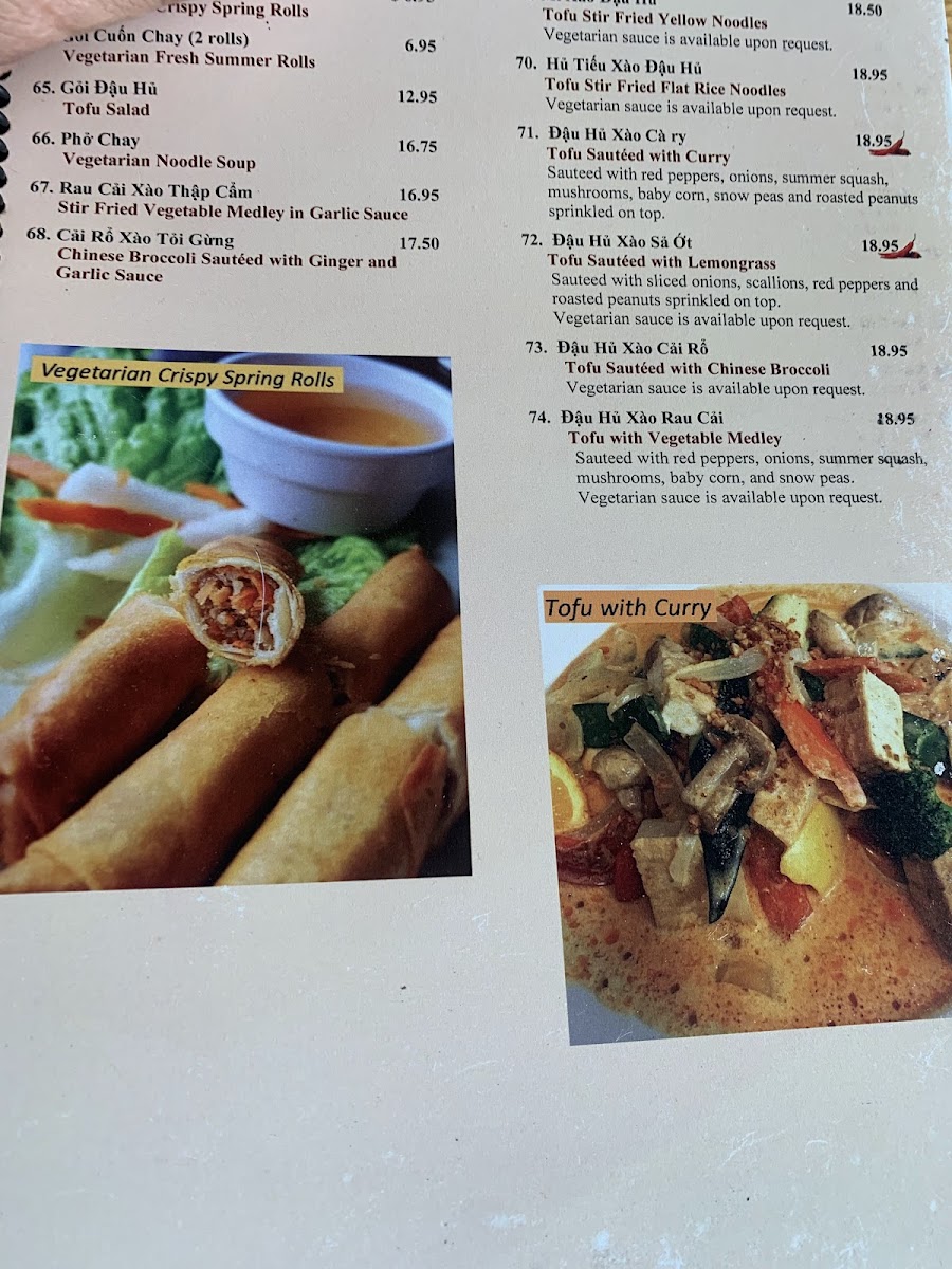 Vegetarian. Stir-fried vegetable medley in garlic sauce.