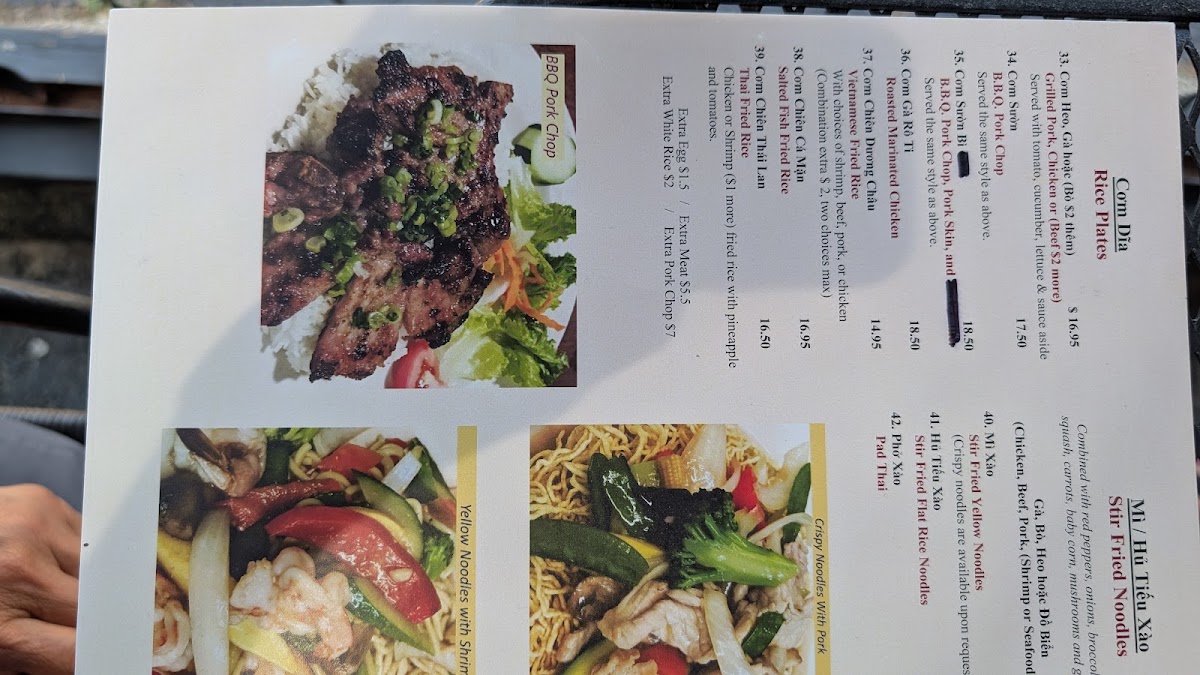 With choices of white, yellow noodles, or bread.